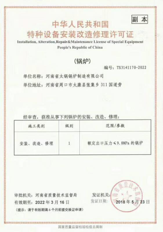 歡迎來到河南省太鍋鍋爐制造有限公司官網(wǎng)! 銷售熱線:15224972999